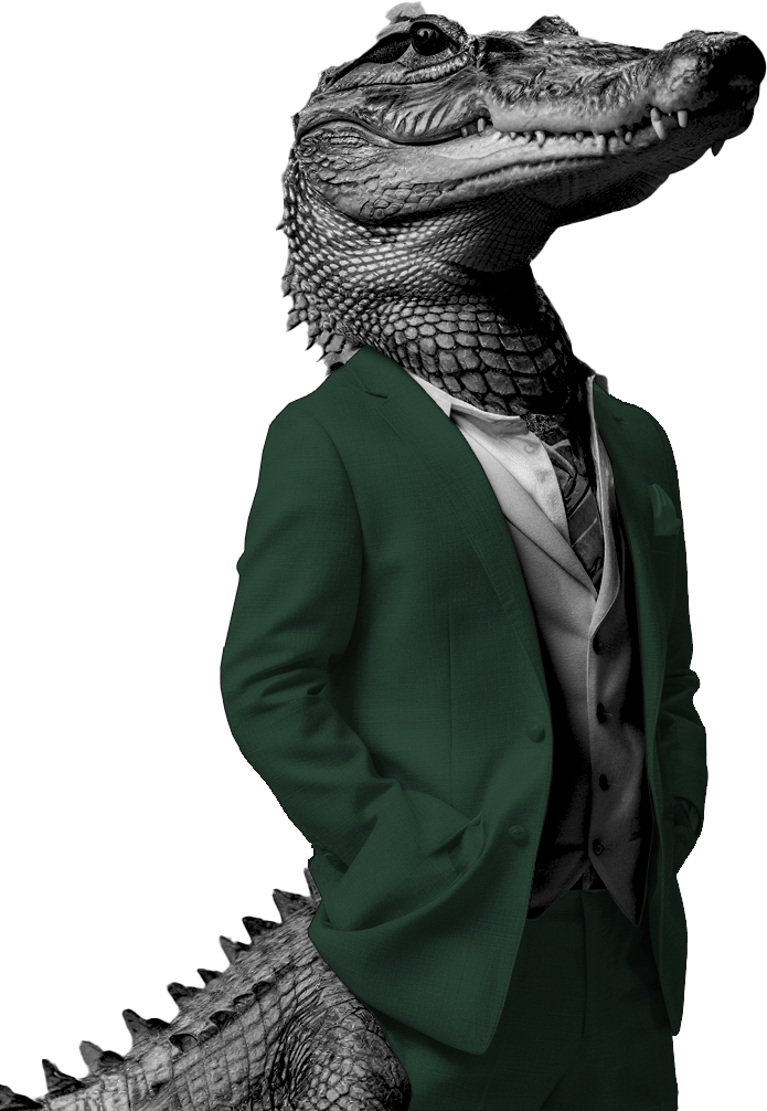 *Pragniemy przeprosić krawca za zaistniałą sytuację podczas przymiarki garnituru dla aligatora, nie przewidzieliśmy, że przymiarka przypadnie tuż przed karmieniem, co mogło wpłynąć na lekkie niezadowolenie naszego modela, przez co będzie trzeba uciekać podczas przymiarki.